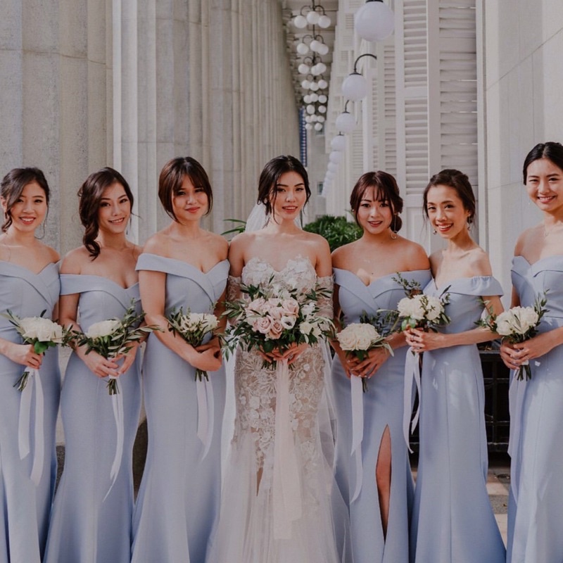 Kalau kamu sudah menemukan gaun pengantin yang tepat, sekarang giliran mencari dress bridesmaid yang memiliki warna senada dan desain yang serupa. Dengan setelan yang simpel sudah membuat bridesmaid terlihat anggun dan tidak berlebihan.